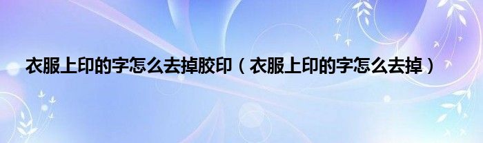 大家好,小科来为大家解答以上问题。衣服上印的字怎么去掉胶印,衣服上印的字怎么去掉很多人还不知道,现在让我们一起来看看吧!