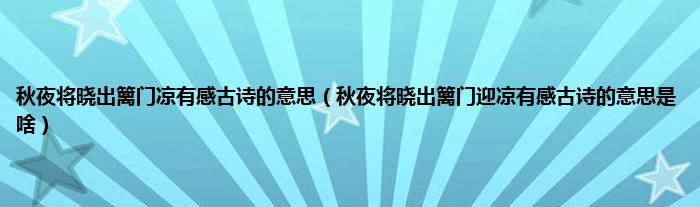 大家好,小科来为大家解答以上问题。秋夜将晓出篱门凉有感古诗的意思,秋夜将晓出篱门迎凉有感古诗的意思是啥很多人还不知道,现在让我们一起来看看吧!