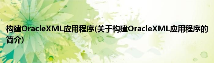 大家好,构建OracleXML应用程序,关于构建OracleXML应用程序的简介很多人还不知道,现在让我们一起来看看吧!
