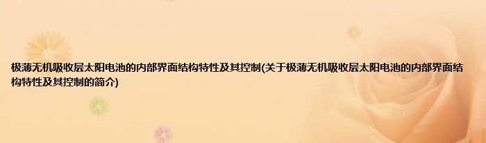 本文关于极薄无机吸收层太阳电池的内部界面结构特性及其控制的简介就讲解完毕,希望对大家有所帮助。