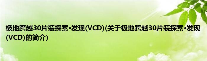 本文关于极地跨越30片装探索·发现(VCD)的简介就讲解完毕,希望对大家有所帮助。