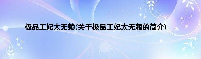 本文关于极品王妃太无赖的简介就讲解完毕,希望对大家有所帮助。
