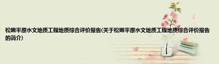 本文关于松嫩平原水文地质工程地质综合评价报告的简介就讲解完毕,希望对大家有所帮助。