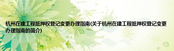 本文关于杭州在建工程抵押权登记变更办理指南的简介就讲解完毕,希望对大家有所帮助。