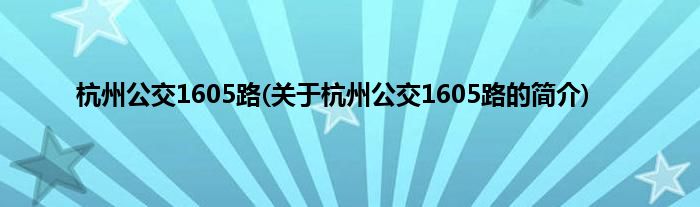 本文关于杭州公交1605路的简介就讲解完毕,希望对大家有所帮助。