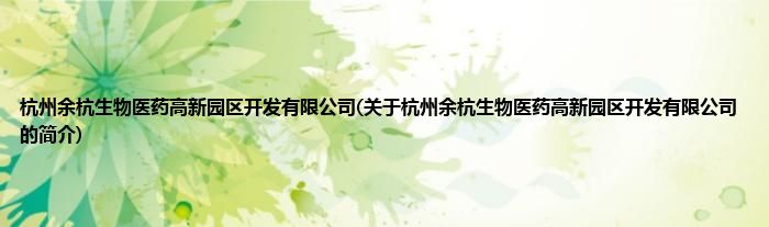 本文关于杭州余杭生物医药高新园区开发有限公司的简介就讲解完毕,希望对大家有所帮助。