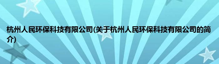 本文关于杭州人民环保科技有限公司的简介就讲解完毕,希望对大家有所帮助。