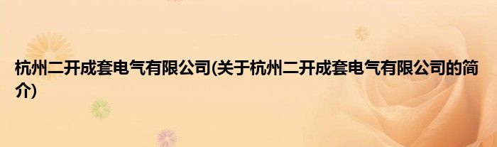 本文关于杭州二开成套电气有限公司的简介就讲解完毕,希望对大家有所帮助。