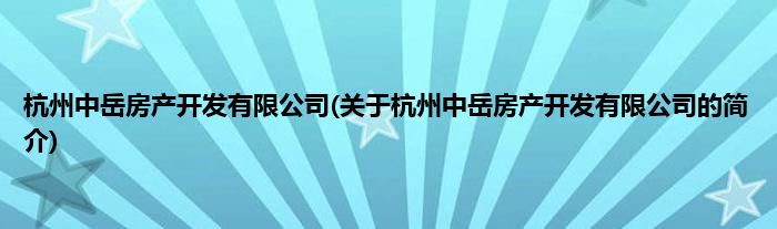 杭州中岳房产开发有限公司(关于杭州中岳房产开发有限公司的简介)