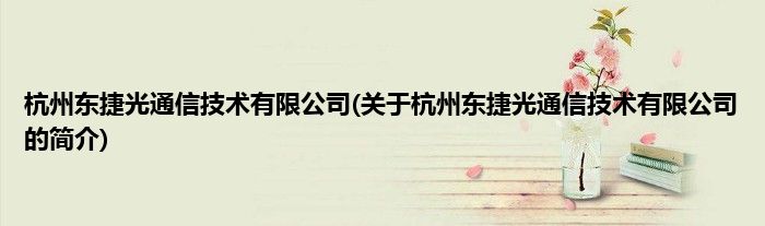 本文关于杭州东捷光通信技术有限公司的简介就讲解完毕,希望对大家有所帮助。