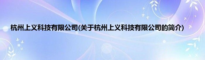 本文关于杭州上义科技有限公司的简介就讲解完毕,希望对大家有所帮助。