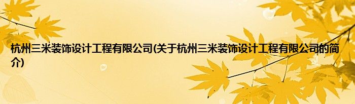 本文关于杭州三米装饰设计工程有限公司的简介就讲解完毕,希望对大家有所帮助。