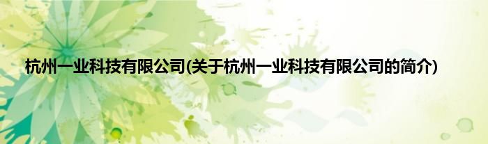 本文关于杭州一业科技有限公司的简介就讲解完毕,希望对大家有所帮助。