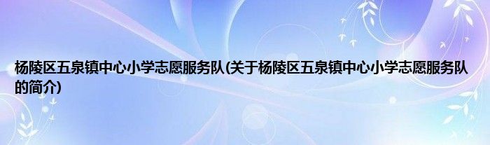 本文关于杨陵区五泉镇中心小学志愿服务队的简介就讲解完毕,希望对大家有所帮助。