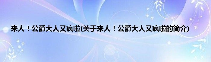 大家好,来人!公爵大人又疯啦,关于来人!公爵大人又疯啦的简介很多人还不知道,现在让我们一起来看看吧!