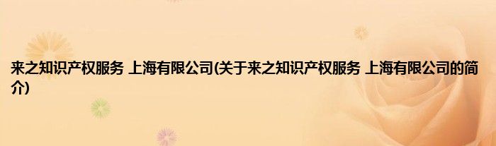 大家好,来之知识产权服务 上海有限公司,关于来之知识产权服务 上海有限公司的简介很多人还不知道,现在让我们一起来看看吧!