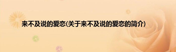 本文关于来不及说的爱恋的简介就讲解完毕,希望对大家有所帮助。