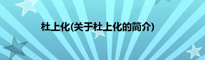 大家好,杜上化,关于杜上化的简介很多人还不知道,现在让我们一起来看看吧!
