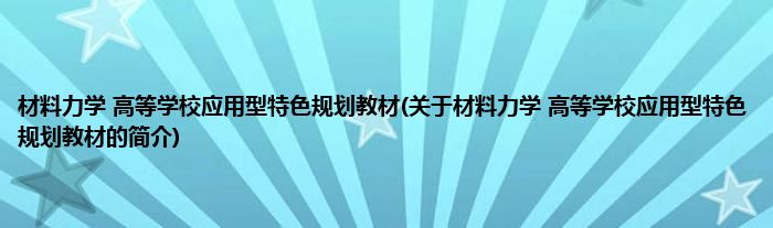 本文关于材料力学 高等学校应用型特色规划教材的简介就讲解完毕,希望对大家有所帮助。