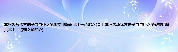 本文关于李照者故徐方伯子与与仆之笔砚交也膺贡北上一诗赠之的简介就讲解完毕,希望对大家有所帮助。