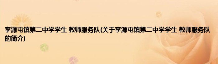 大家好,李源屯镇第二中学学生 教师服务队,关于李源屯镇第二中学学生 教师服务队的简介很多人还不知道,现在让我们一起来看看吧!