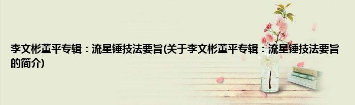 本文关于李文彬董平专辑:流星锤技法要旨的简介就讲解完毕,希望对大家有所帮助。