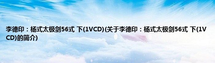 1、 《李德印:杨式太极剑56式(下)(1VCD)》是黑龙江文化电子音像出版社出版的VCD音像制品。