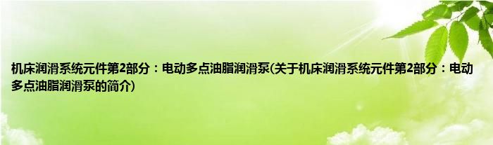 机床润滑系统元件第2部分:电动多点油脂润滑泵(关于机床润滑系统元件第2部分:电动多点油脂润滑泵的简介)
