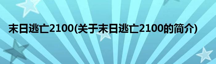 大家好,末日逃亡2100,关于末日逃亡2100的简介很多人还不知道,现在让我们一起来看看吧!