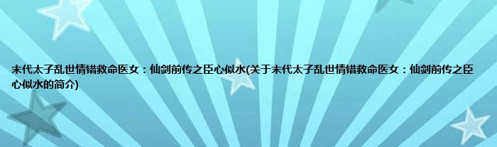 本文关于末代太子乱世情错救命医女:仙剑前传之臣心似水的简介就讲解完毕,希望对大家有所帮助。
