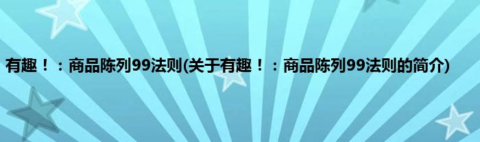 本文关于有趣!:商品陈列99法则的简介就讲解完毕,希望对大家有所帮助。
