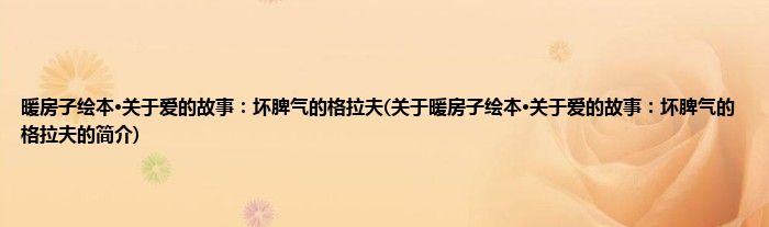 本文关于暖房子绘本·关于爱的故事:坏脾气的格拉夫的简介就讲解完毕,希望对大家有所帮助。