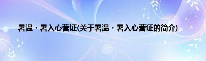 本文关于暑温・暑入心营证的简介就讲解完毕,希望对大家有所帮助。
