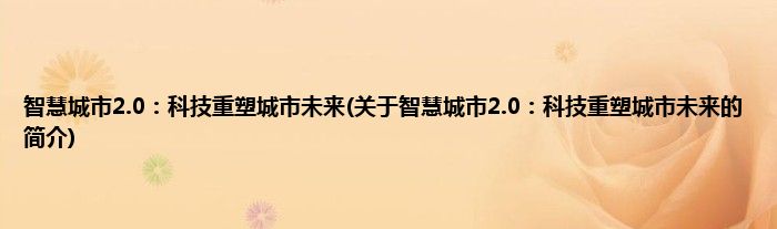 本文关于智慧城市2.0:科技重塑城市未来的简介就讲解完毕,希望对大家有所帮助。