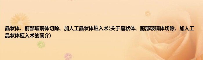本文关于晶状体、前部玻璃体切除、加人工晶状体植入术的简介就讲解完毕,希望对大家有所帮助。