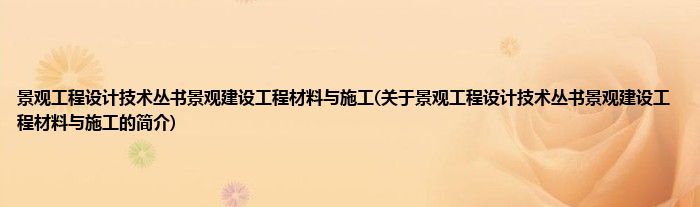 本文关于景观工程设计技术丛书景观建设工程材料与施工的简介就讲解完毕,希望对大家有所帮助。