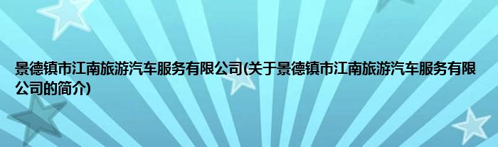 本文关于景德镇市江南旅游汽车服务有限公司的简介就讲解完毕,希望对大家有所帮助。