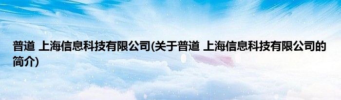 本文关于普道 上海信息科技有限公司的简介就讲解完毕,希望对大家有所帮助。