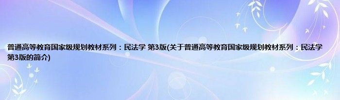 本文关于普通高等教育国家级规划教材系列:民法学 第3版的简介就讲解完毕,希望对大家有所帮助。
