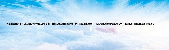 本文关于普通高等教育十五国家级规划教材配套参考书:基础有机化学习题解析的简介就讲解完毕,希望对大家有所帮助。