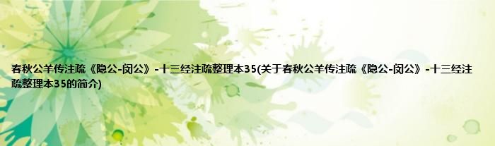 本文关于春秋公羊传注疏《隐公-闵公》-十三经注疏整理本35的简介就讲解完毕,希望对大家有所帮助。