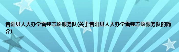 1、 昔阳县人大办学雷锋志愿服务队是由昔阳县志愿服务联合会领导下的志愿团体。