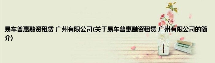大家好,易车普惠融资租赁 广州有限公司,关于易车普惠融资租赁 广州有限公司的简介很多人还不知道,现在让我们一起来看看吧!