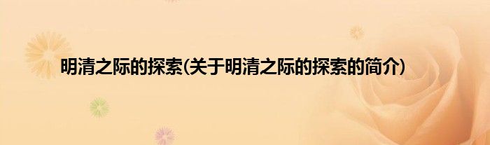 大家好,明清之际的探索,关于明清之际的探索的简介很多人还不知道,现在让我们一起来看看吧!