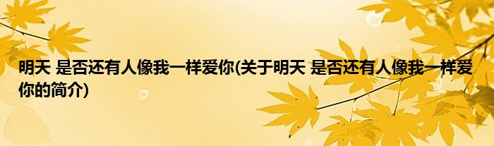 本文关于明天,是否还有人像我一样爱你的简介就讲解完毕,希望对大家有所帮助。