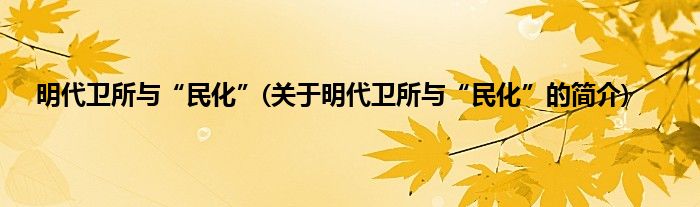 大家好,明代卫所与“民化”,关于明代卫所与“民化”的简介很多人还不知道,现在让我们一起来看看吧!