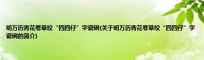 本文关于明万历青花卷草纹“四四仔”字瓷碗的简介就讲解完毕,希望对大家有所帮助。