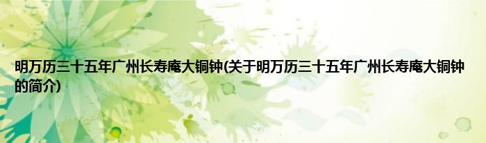 1、 明万历三十五年广州长寿庵大铜钟是明万历三十五年的文物。