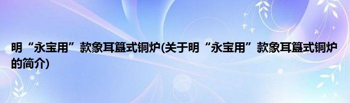 本文关于明“永宝用”款象耳簋式铜炉的简介就讲解完毕,希望对大家有所帮助。