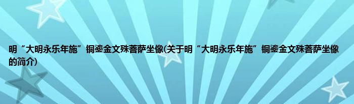 本文关于明“大明永乐年施”铜鎏金文殊菩萨坐像的简介就讲解完毕,希望对大家有所帮助。
